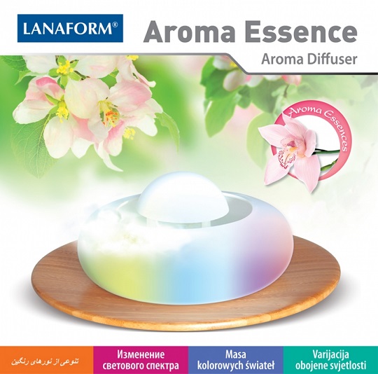 Комплектът от бамбукова поставка и лампа за арома и свето терапия „Aroma Essence” от Lanaform е здравословен и естетически красив уред. Напълно тиха, „Aroma Essence” не само че разпръсква ароматна студена пара, но и създава добро настроение с разноцветните си светлини.